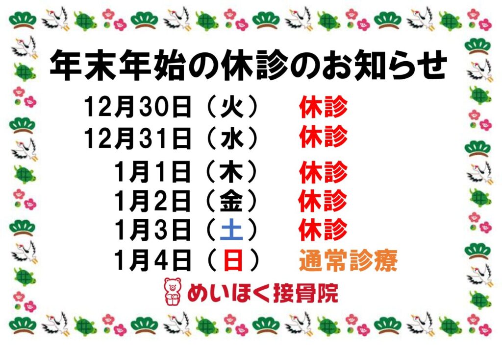 〜年末年始の休診のお知らせ〜